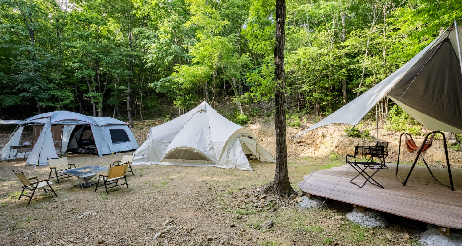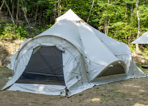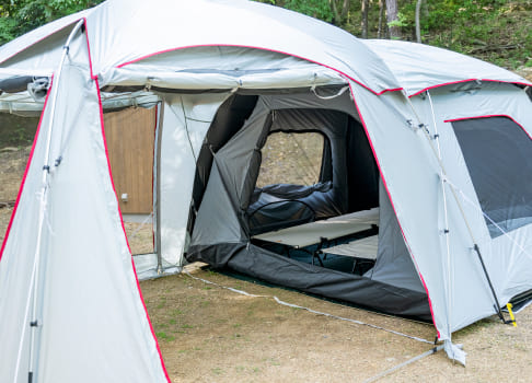 周囲を気にせず、思い思いの時間を過ごせるのが魅力のプライベートテントエリア。6名用テントでも広々と使えるよう、スペースもたっぷり確保しました。レジャーとしてはもちろん、チームビルディングの一環としてご利用いただくのもおすすめです。