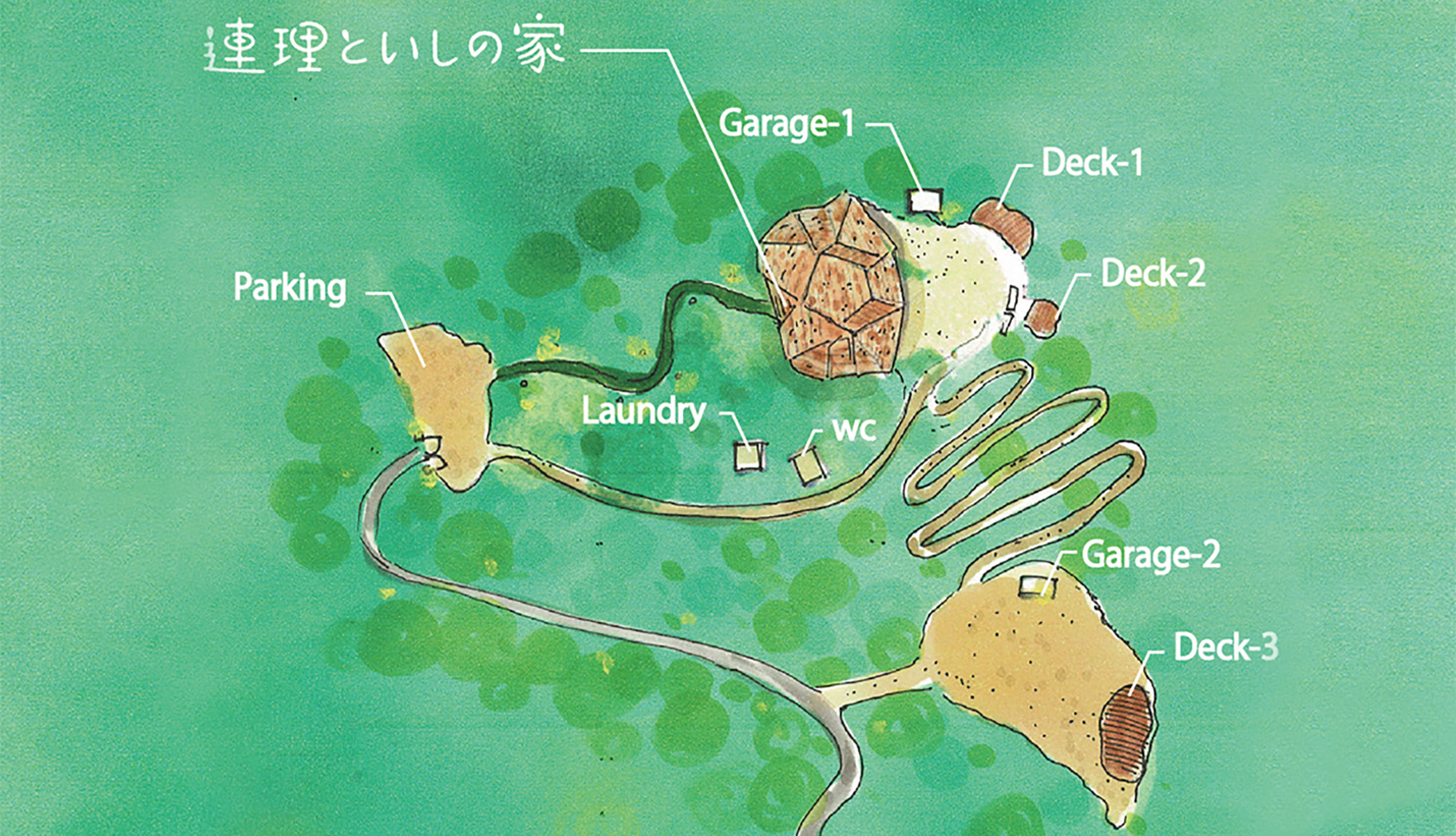 都心から3時間車を走らせた先に広がる久留女木の大自然。その一角を独り占めするようにして、連理といしの家はあります。視界いっぱいに広がる大空も、青々と茂る森林も、宝石のような星々も、今日はすべてあなただけのもの。大人の秘密基地で過ごす時間が、あの頃のワクワクとした気持ちを呼び覚まします。