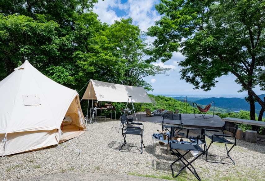 周囲を気にせず、思い思いの時間を過ごせるのが魅力のプライベートテントエリア。6名用テントでも広々と使えるよう、スペースもたっぷり確保しました。レジャーとしてはもちろん、チームビルディングの一環としてご利用いただくのもおすすめです。