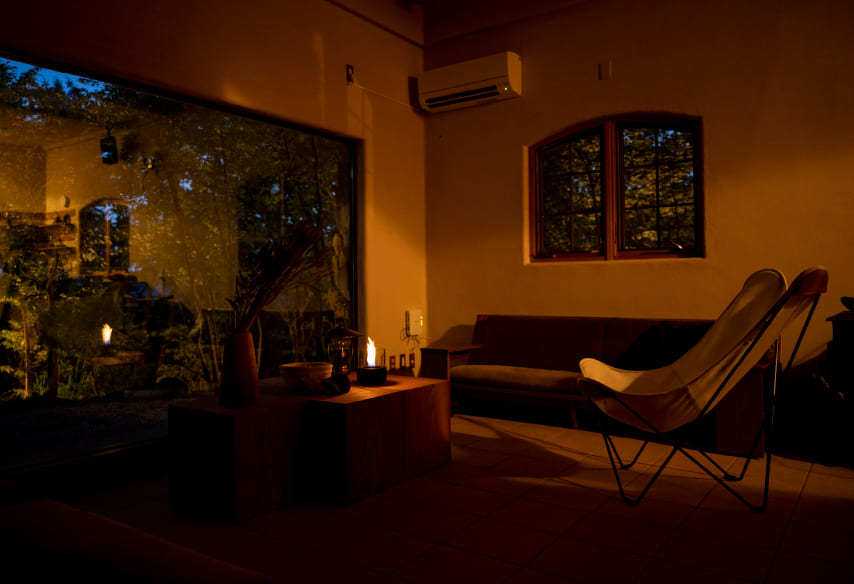 都心から3時間車を走らせた先に広がる久留女木の大自然。その一角を独り占めするようにして、連理といしの家はあります。視界いっぱいに広がる大空も、青々と茂る森林も、宝石のような星々も、今日はすべてあなただけのもの。大人の秘密基地で過ごす時間が、あの頃のワクワクとした気持ちを呼び覚まします。